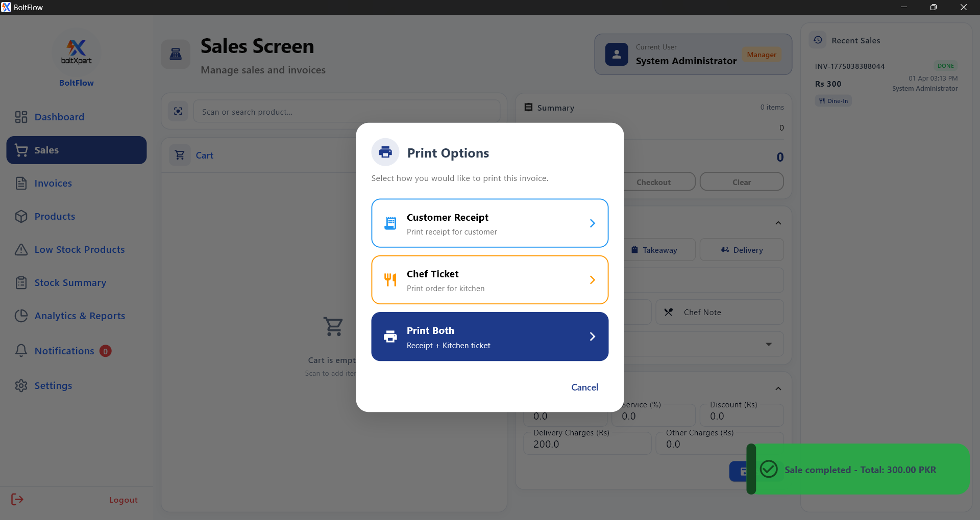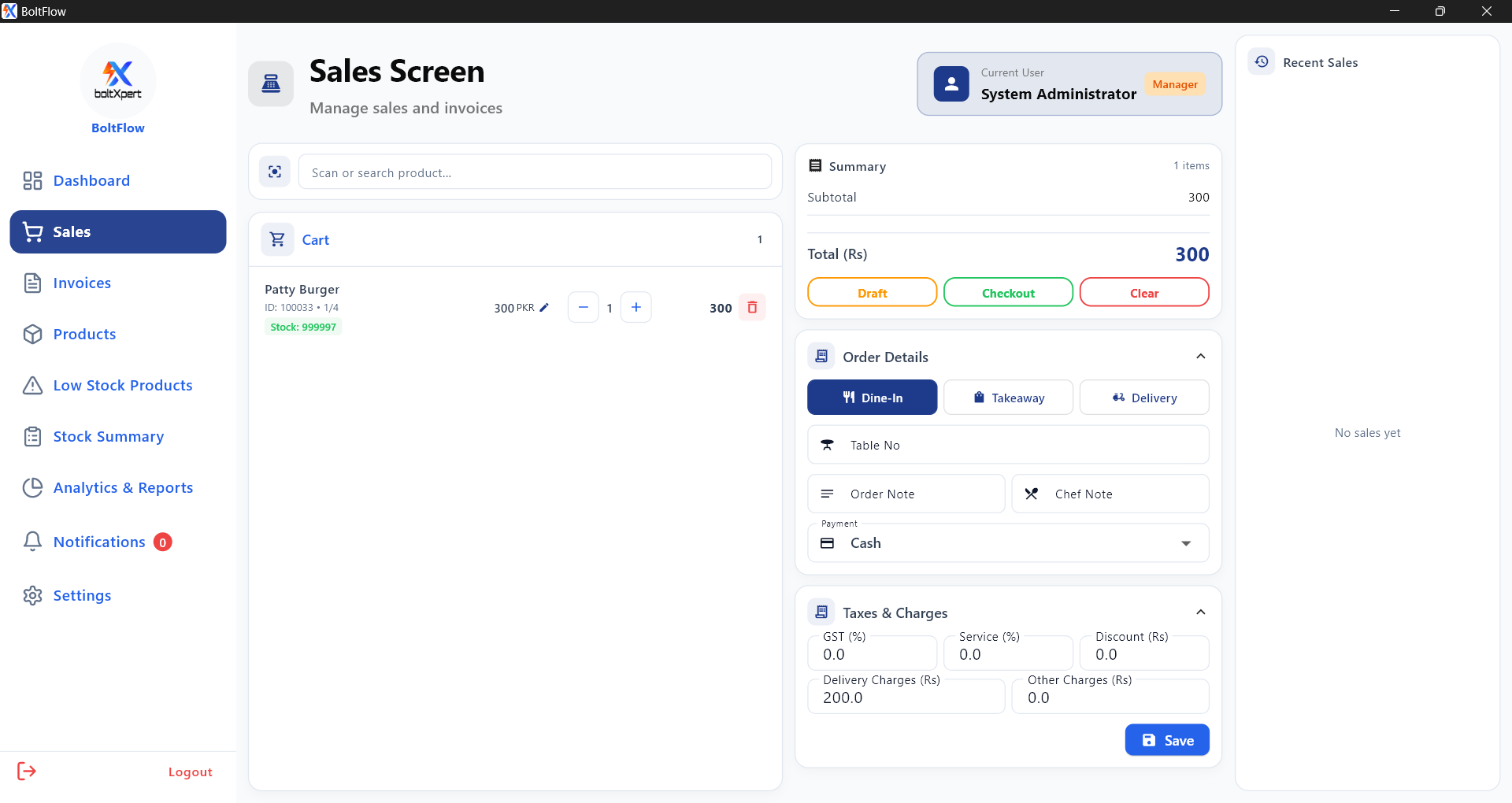 FBR compliant GST and service charge management.